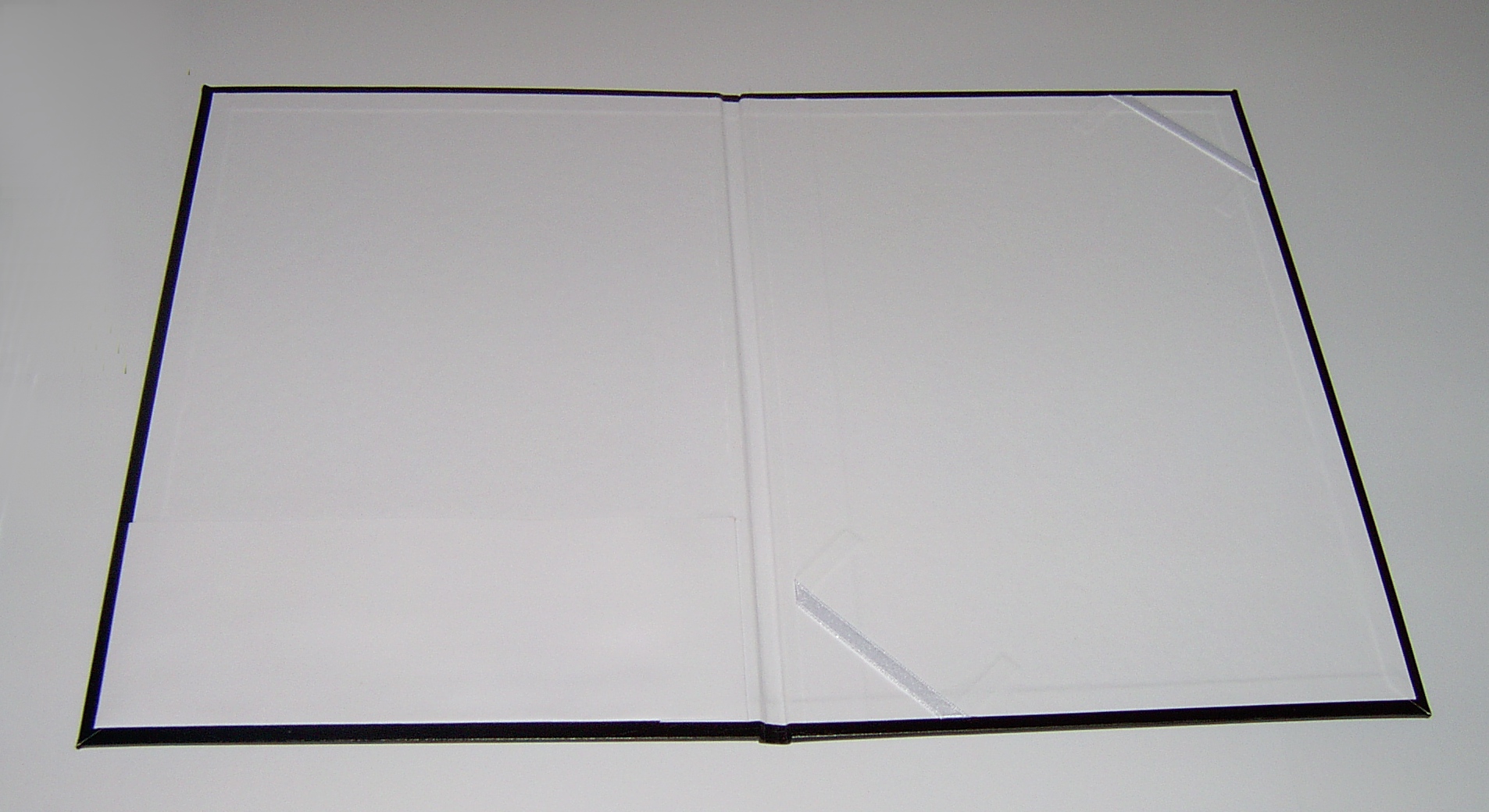 Jobb belső oldalon átlósan 2 db  6 mm-es fehér szaténszalag